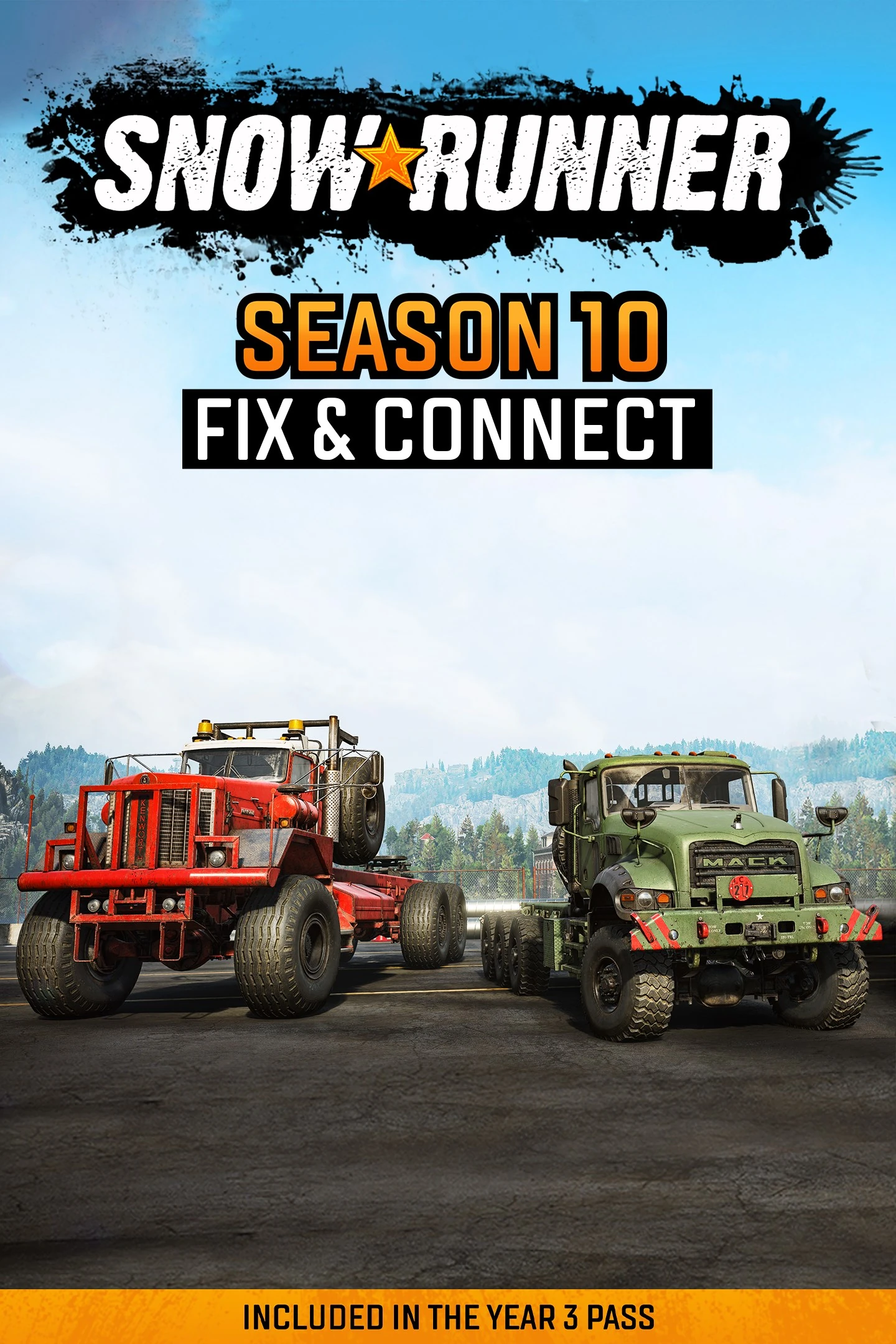 Fix & Connect is the tenth content expansion pack for SnowRunner, second to be included in Year 3 Pass. It was released in July 18, 2023 for Microsoft Windows, PlayStation 4, PlayStation 5, Xbox One, Xbox Series S, Xbox Series X and Nintendo Switch.