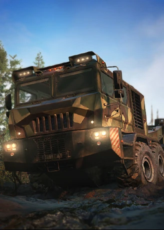 The 74760 is fairly similar to the KOLOB 74941 but is larger in size overall and its Differential lock and AWD are always on. While somewhat slow initially when first accelerating it is capable of surprising speed in mud once it gains momentum. Though its low hanging skid plate initially used to seem to drag in mud slowing the vehicle down it seems to have been modified much like the Azov 73210's infamous low hanging bumper improving its performance in mud and allowing it to compete with its brother the KOLOB 74941. The 74760 is able to be equipped with active suspension in Explore & Expand further improving its ability offroad and practically negating any issues with its skid plate catching on mud. The 74760 and the 74941 also can be equipped with a new gearbox released in phase 2. The Multi-purpose gearbox gives both KOLOBs a great increase in acceleration and top speed at the cost of only having 1 low gear and no high gear. This makes the 74760 far more useful for heavy hauling at a moderate rate of speed but it can cause its performance to suffer in very deep mud which somewhat limits the gearboxes overall effectiveness. It's also known to be one of the most stable trucks, if not the most stable as it's impossible to flip even if the player tries.
