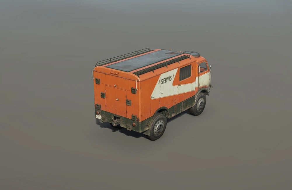 Step 33-64 "Crocodile"'s Van Body AddonA unique body repair unit that carries 60L of fuel, 500 repair parts and 2 wheels, the attachment costs 4900 currency to buy and is available only to Step 33-64 "Crocodile"Its color follows its attached vehicle. |