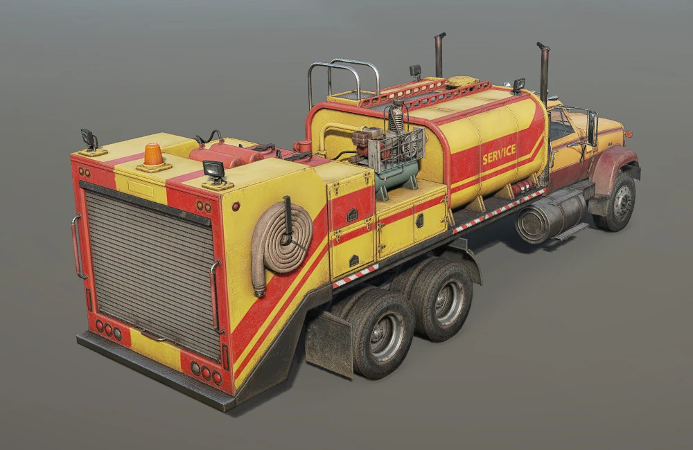 Large Maintenance Frame AddonA large version of standard Maintenance Frame Addon that carries 2000L of fuel, 350 repair parts and 6 wheels. The attachment costs 6800 currency to buy and is only available to Azov 73210, Pacific P12, FEMM 37-AT and Kenworth 963. It blocks trailer attachment while installed。 |