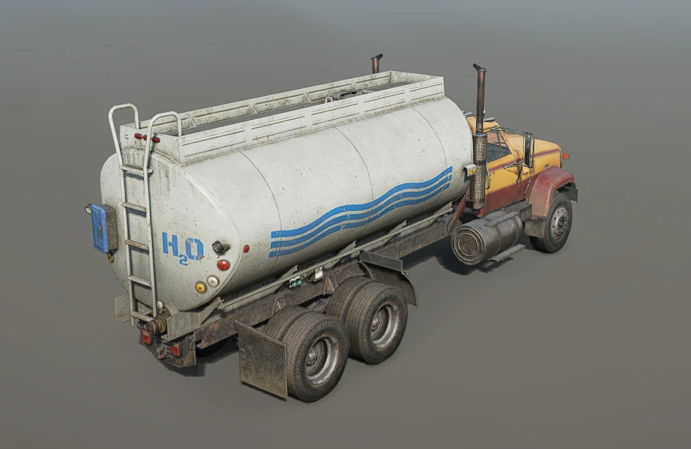 Heavy Water Carrier TrailerA semi-trailer that carries 3700L of water, it can be attached to any truck with Saddle Low add-on, except for Freightliner M916A1. This specific water tank has the highest capacity available and costs 6000 currency to buy from trailer store. |